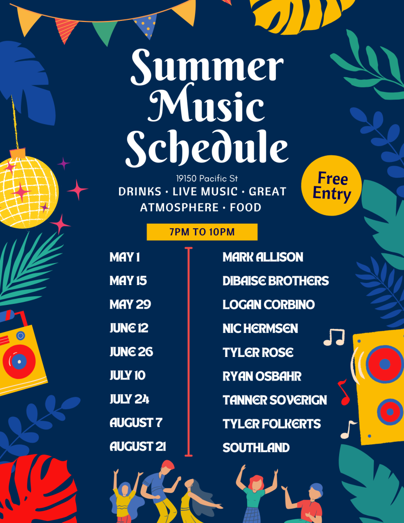 Summer Music Schedule – Come enjoy patio music nights all summer long! Fore Seasons features live music every other Friday night from May 1st to September 1st.